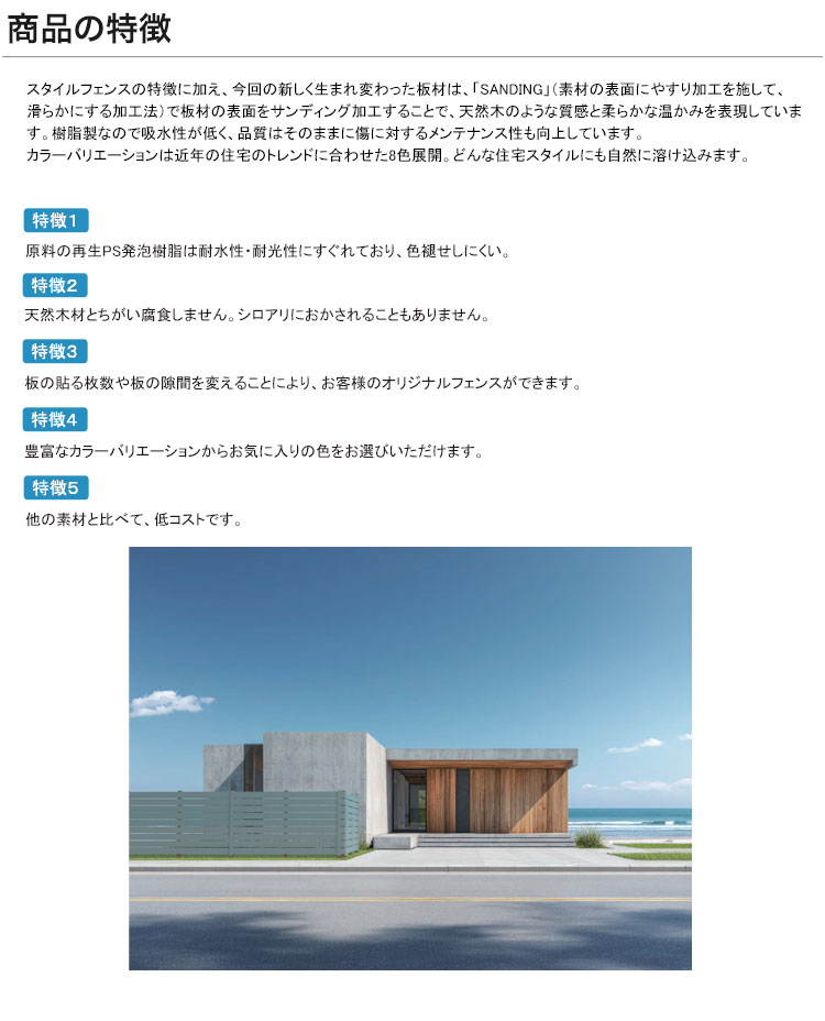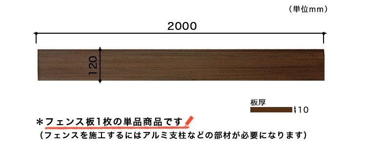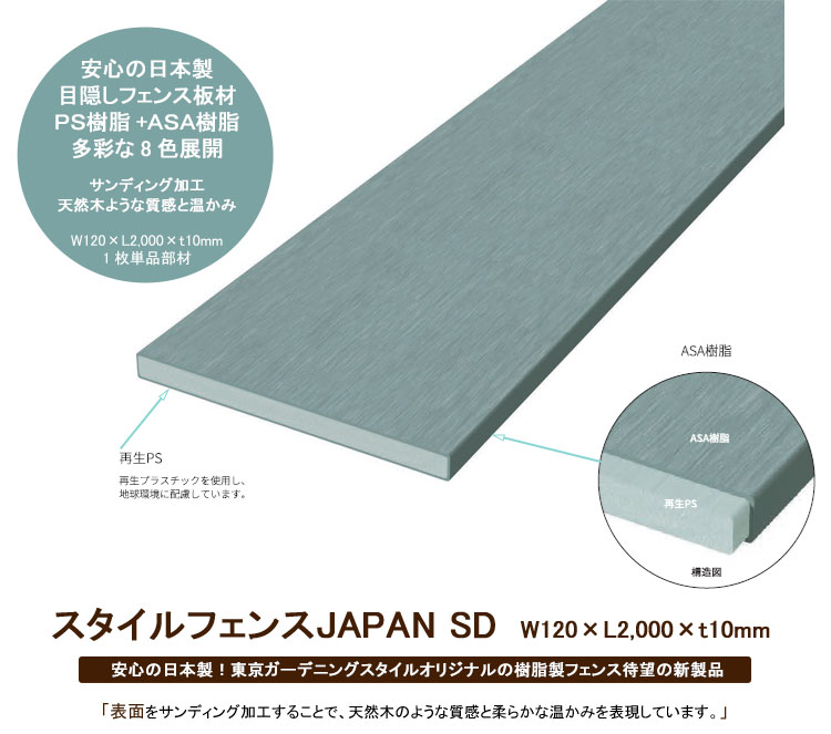 スタイルフェンスJAPAN SD L2000(※フェンス板材1枚単品部材) サイズ:W120×L2,000×t10mm